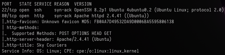I add this hostname to my /etc/hosts file and then load the page using http://skycouriers.thm