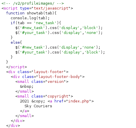 Since the web shell uploaded has the filename uploaded, I navigated to http://skycouriers.thm/v2/profileimages/webshell.php