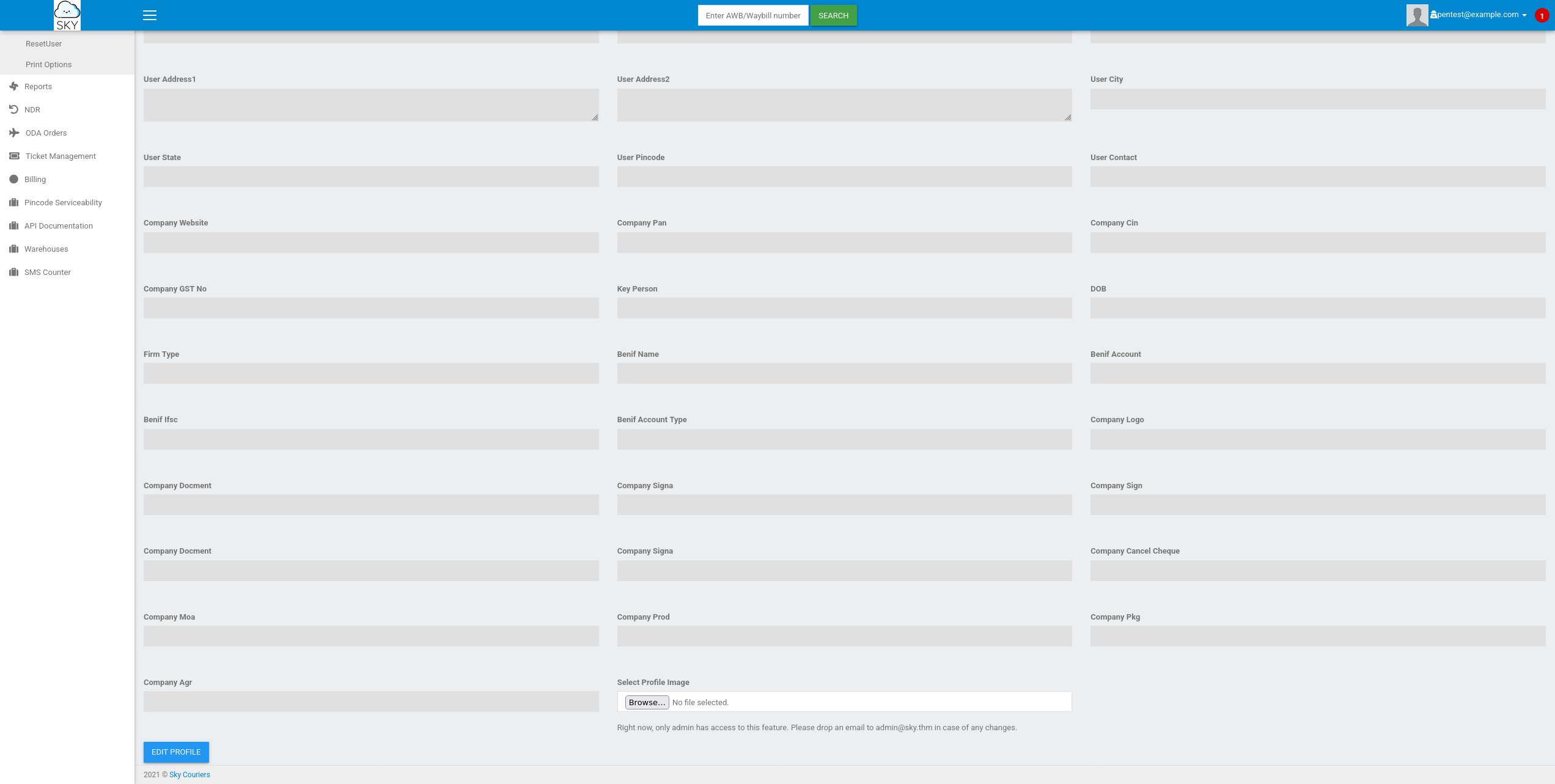 I begin exploring the authenticated side of the web app and come across a page that lets you edit account details: http://skycouriers.thm/v2/profile.php